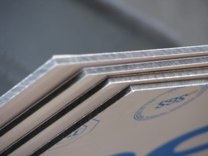 Kennen Sie schon Verbundmaterial? Ein Material, das an den Außenseiten eine dünne Aluminiumschicht aufweist und einen harten PVC-Kern umschließt. Dieses Material ist sehr leicht und besticht durch seine gleichzeitige Stabilität. Es ist für den Außen- und Inneneinsatz geeignet. Natürlich man kann es ganz toll bearbeiten: